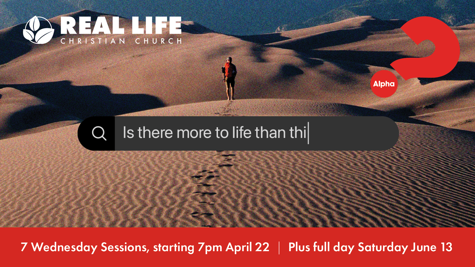 Starting 7pm, Wednesday 22 April, Real Life Christian Church will be hosting eight Alpha sessions, including a special Saturday gathering. Everyone is welcome—come join the conversation!