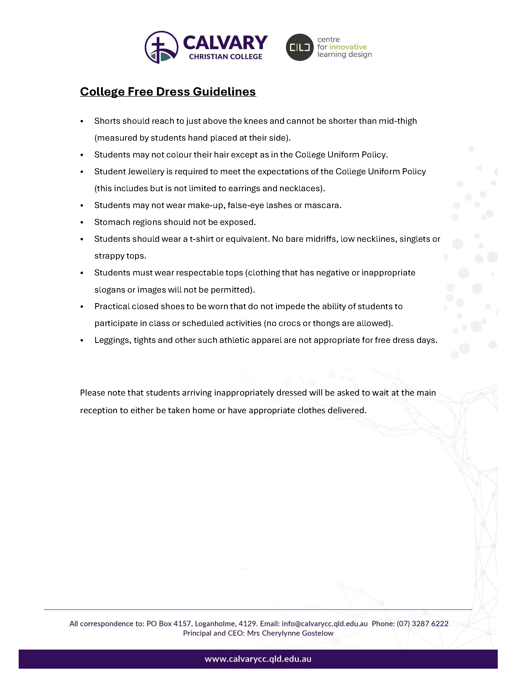 For further details on uniform requirements please visit the College website using the following link: https://calvarycc.qld.edu.au/parent-information and click on the uniforms tile.